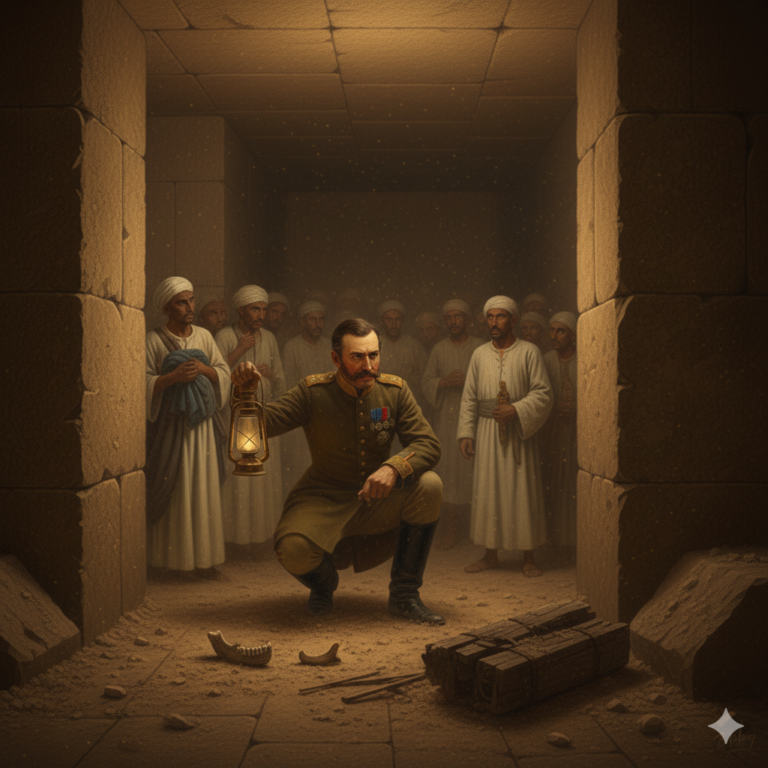 當時他已年過五十,軍旅生涯已過巔峰,渴望成就一番「不朽的功績」。起初,他只是個遊客,但當他意識到埃及龐大的遺址蘊藏著「名望的種子」時,便投入了自己的全部家產,開始了大規模的挖掘工作。然而,他缺乏考古學知識,不了解石工技藝,也無法解讀象形文字。