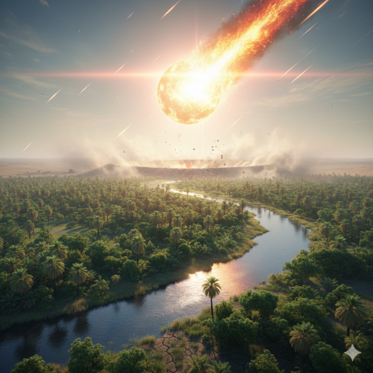 已知該隕石坑是由一顆直徑1.5公里(約130億噸)的鐵隕石撞擊形成的。通常情況下,冰川移動是透過侵蝕地表,從而抹去隕石坑。然而,希瓦薩隕石坑至今仍然清晰可見,這表明它形成於上一個冰河時期末期。在全球範圍內,人們可以發現距今12900年的獨特沉積層。這些被稱為「黑墊」的沉積層已在50多個地點被發現,主要分佈在北美。這種薄薄的黑色沉積層包含奈米鑽石(僅在隕石撞擊產生的極高溫度和壓力下形成)、磁性球粒(由岩石熔化和散射形成)、高濃度木炭(來自前所未有的全球森林火災)以及外星物質湧入產生的鉑。讓我們模擬一顆1.5噸重的隕石撞擊地球時的情況。