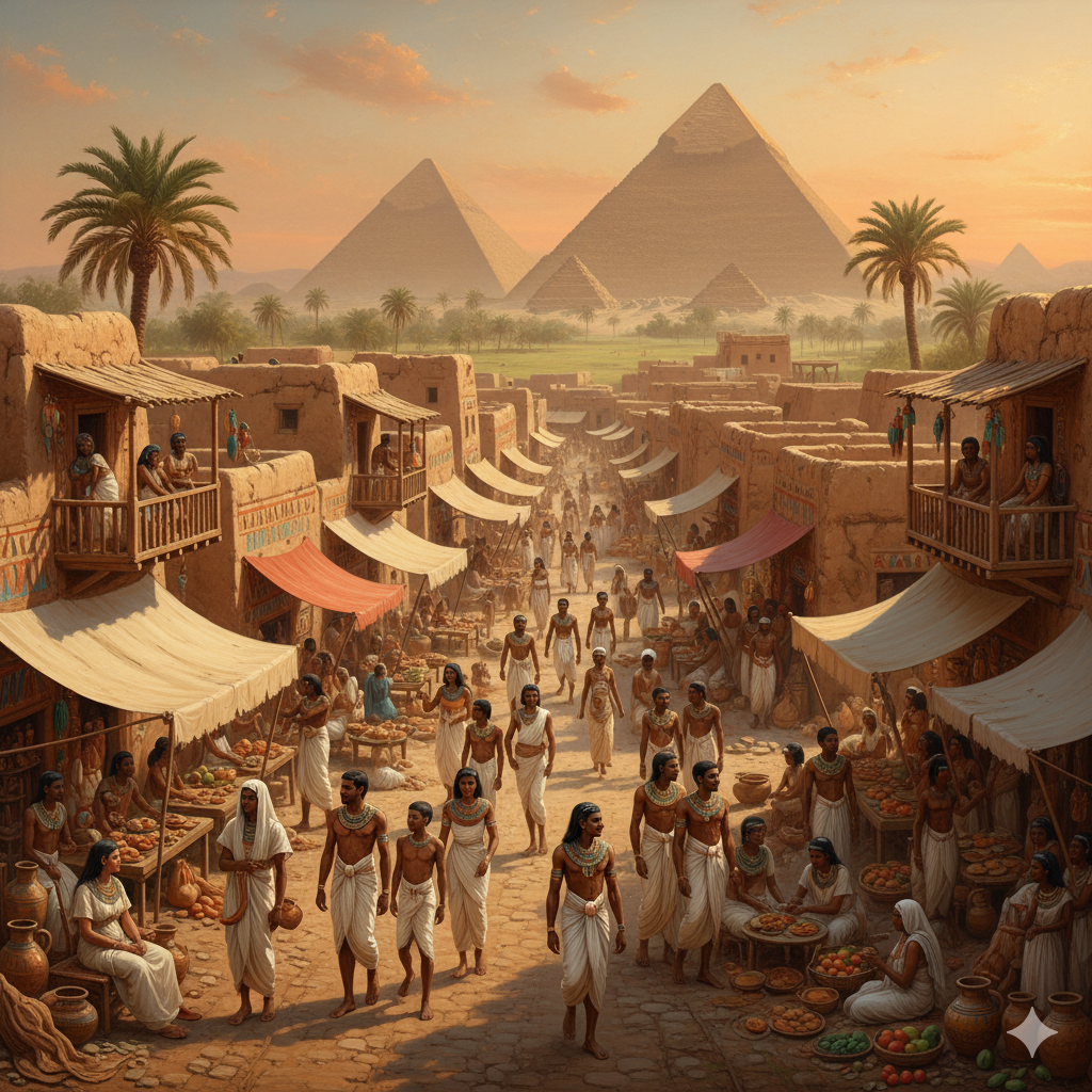 Dies unterscheidet sich deutlich von dem Bild des Alten Reiches, das wir aus unseren Schulbüchern kennen. Die Landschaft bestand damals aus verstreuten, einstöckigen Häusern aus sonnengetrockneten Ziegeln, aus denen langsam der Rauch von backendem Brot aufstieg. Von Königen oder Adligen war nirgends eine Spur; kleine Siedlungen lagen verstreut über weite Ackerflächen. Es war schlicht die typische Landschaft eines jeden Agrarlandes.