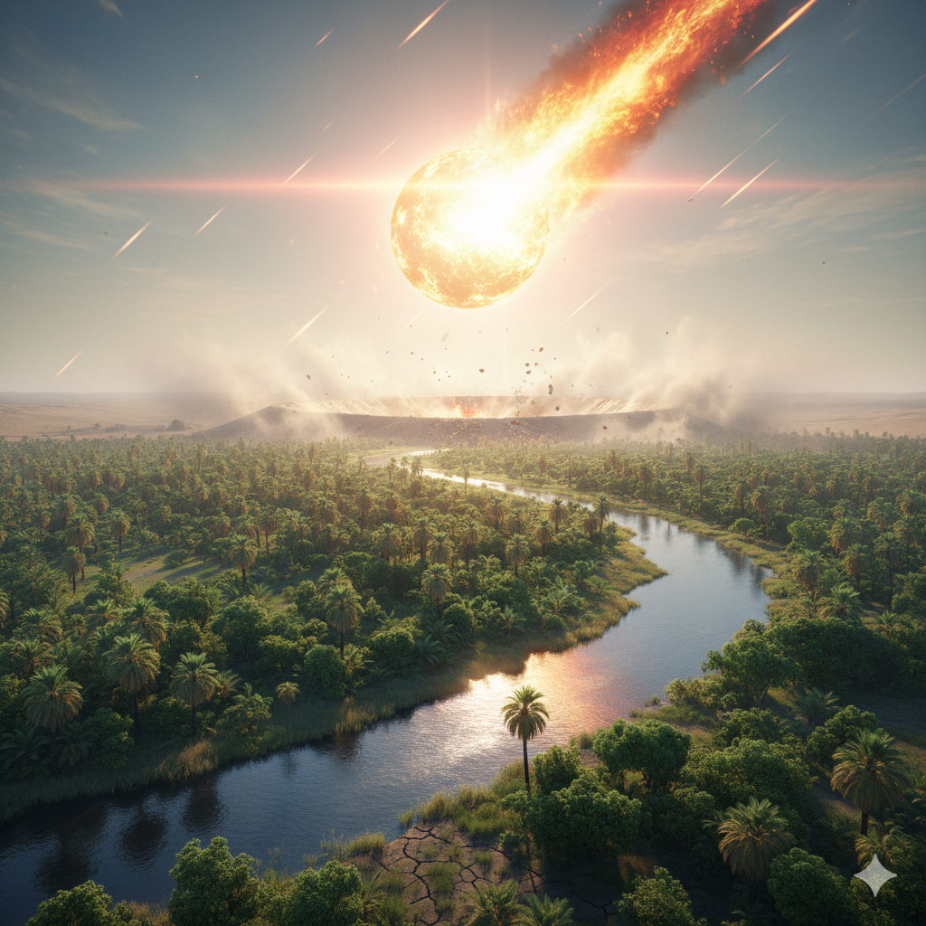 Vor 12.900 Jahren schlug ein Meteorit mit einem Durchmesser von 1,5 km in Nordgrönland ein. Die freigesetzte Energie entsprach der gleichzeitigen Detonation von etwa 9.500 Zar-Bomben an einem einzigen Punkt. Dies übersteigt die Gesamtzahl der jemals von der Menschheit eingesetzten Atomwaffen bei Weitem.