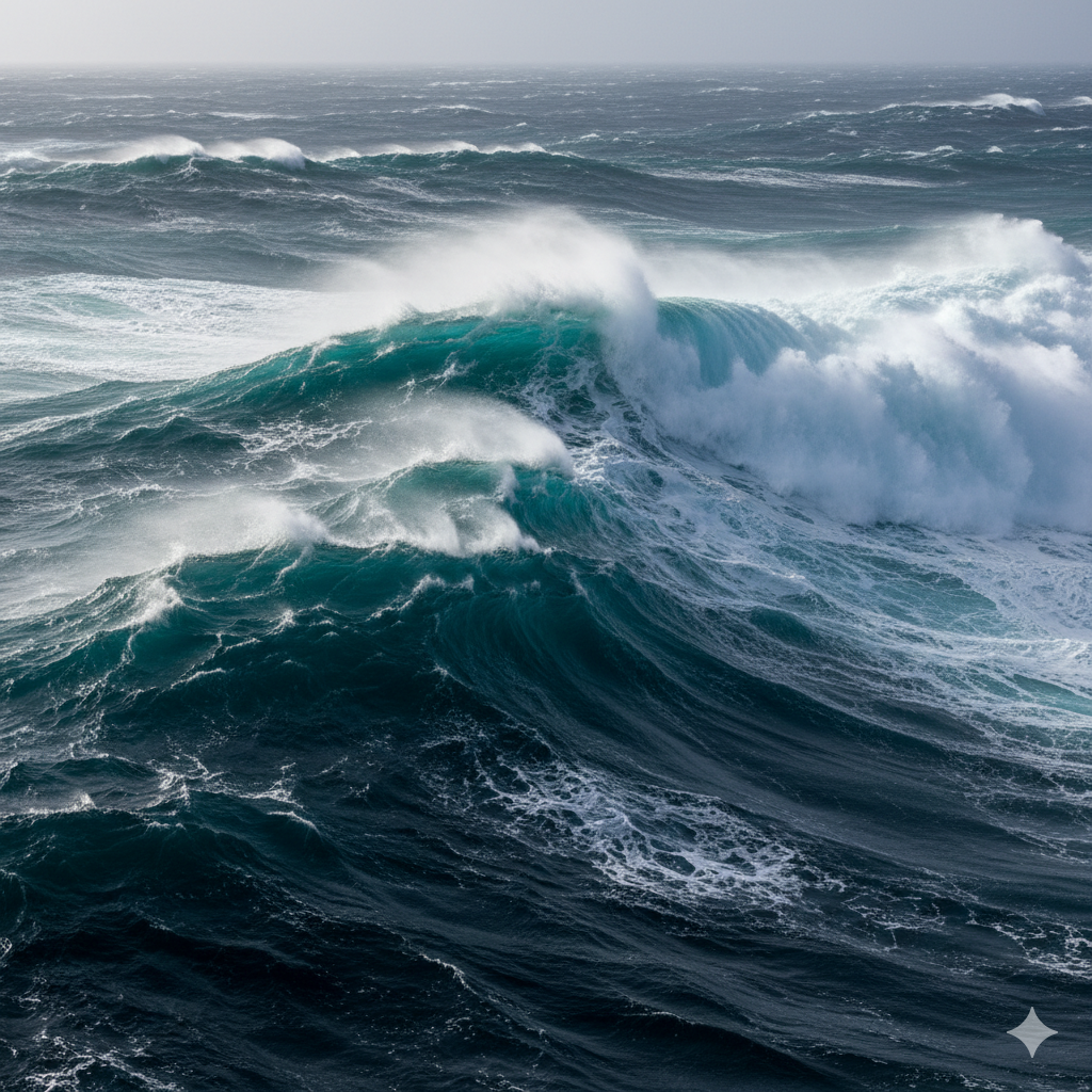 Hier sank die Wassertiefe drastisch von 2.000 Metern auf unter 100 Meter, wodurch die Wellengeschwindigkeit rapide abfiel und ihre gesamte Energie explosionsartig vertikal (in Wellenhöhe) umgewandelt wurde. Wäre die Wassertiefe lediglich von 2.000 Metern auf 50 Meter gesunken, hätte sich die Wellenhöhe theoretisch um mehr als das 2,5-Fache erhöht.