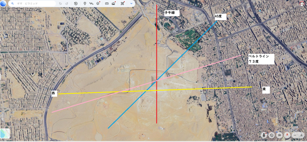 Die vier Seiten der Großen Pyramide sind perfekt nach den Himmelsrichtungen (Osten, Westen, Norden und Süden) ausgerichtet. Die Abweichung von Nord beträgt lediglich 3 Minuten (0,05 Grad). Eine solche Präzision erfordert eine Lichtreferenzlinie, die über mehrere Kilometer genau bleibt. Dies gelang in einer Zeit vor der Erfindung des Kompasses.