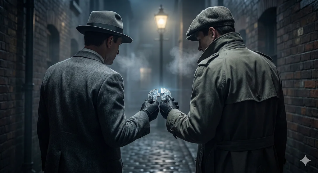 Let’s say Mr. S tried to contact an Eastern Bloc agent without knowing their appearance. A spy list would have included photos, but such a dangerous list likely didn’t exist. Furthermore, since fax machines hadn’t been invented in 1948, verifying identity based solely on appearance would have been difficult. In that situation, possessing a secret code would have ensured reliable identity verification. One person holds a piece of paper cut from a book, while the other holds the book itself. If the cut edges of the paper and the book match, the other person’s identity can be definitively confirmed.