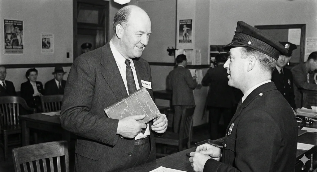 Failure in this operation was unacceptable. The MGB’s top agents were chosen for the task. That was Francis. The fate of the entire organization rested on him. On July 22, 1949, Francis delivered a copy of the Rubaiyat containing a coded message and Jessica’s phone number to the police. He fabricated a story that it had been thrown into the back seat of a car. The police believed Francis. They found the coded message and Jessica’s phone number and contacted her. Jessica must have been astonished.