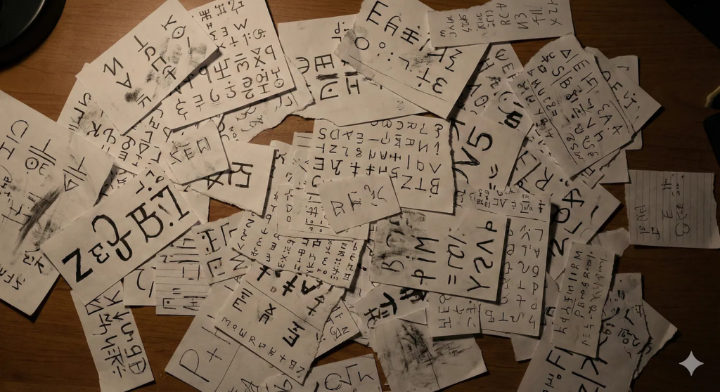 It’s to disrupt the investigation. There’s nothing more difficult to decipher than a meaningless code. No matter how much you try to decipher it, all you get is a nonsensical message. If that was the MGB’s objective, then the string of letters written here was an accessory disguised as a code. And this accessory elevated a simple token into a tool used for spy messages. The corrections were made with a faint pencil, almost invisible, and made to appear meaningful. It was a staging to enhance the credibility of the phone number written directly below it.